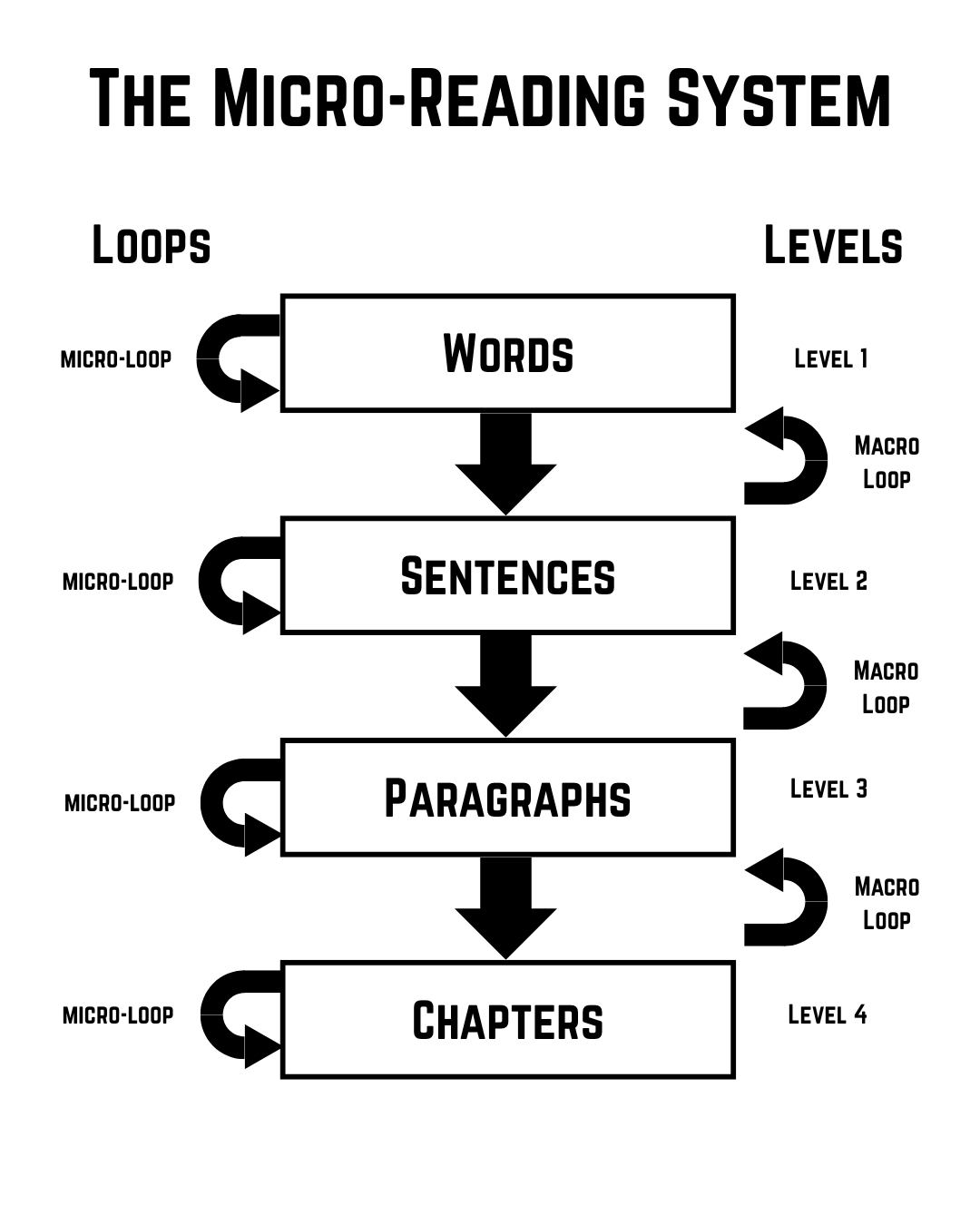 At each level of The Micro-Reading System there are micro-loops that a reader can perform.